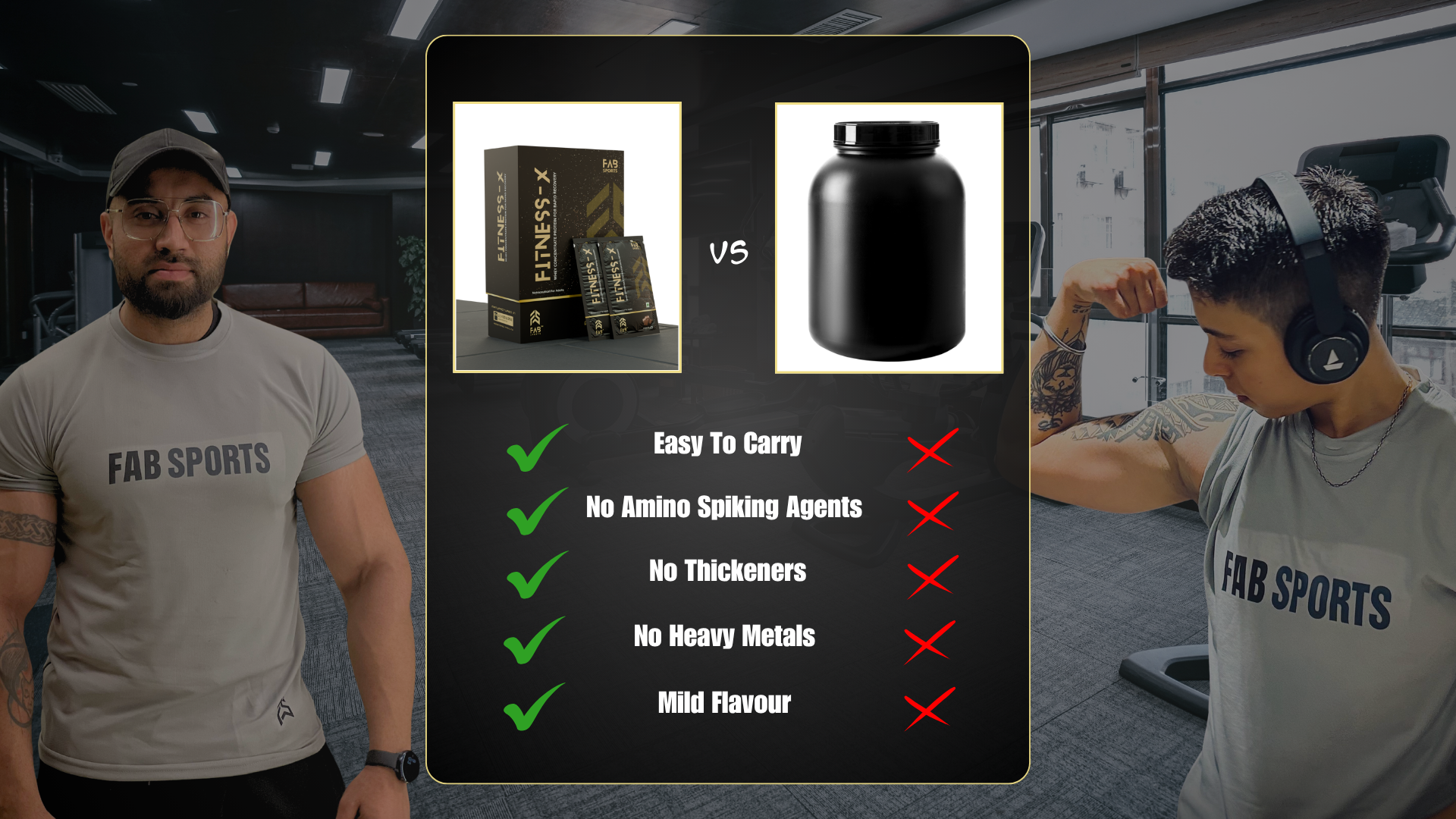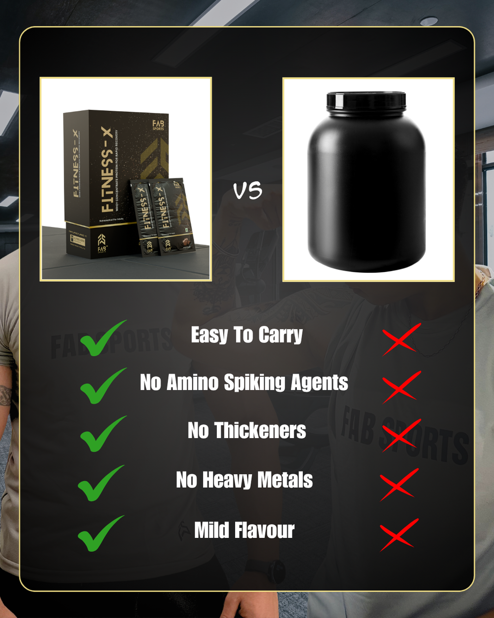 Fab Sports whey protein sachets are your go-to travel companion! Small and easy to carry, Fitness-X, Power-X, and Speed-X sachets make it a snap to fuel up on the move. Simply toss them in your bag, blend, and energize your workout wherever, whenever!