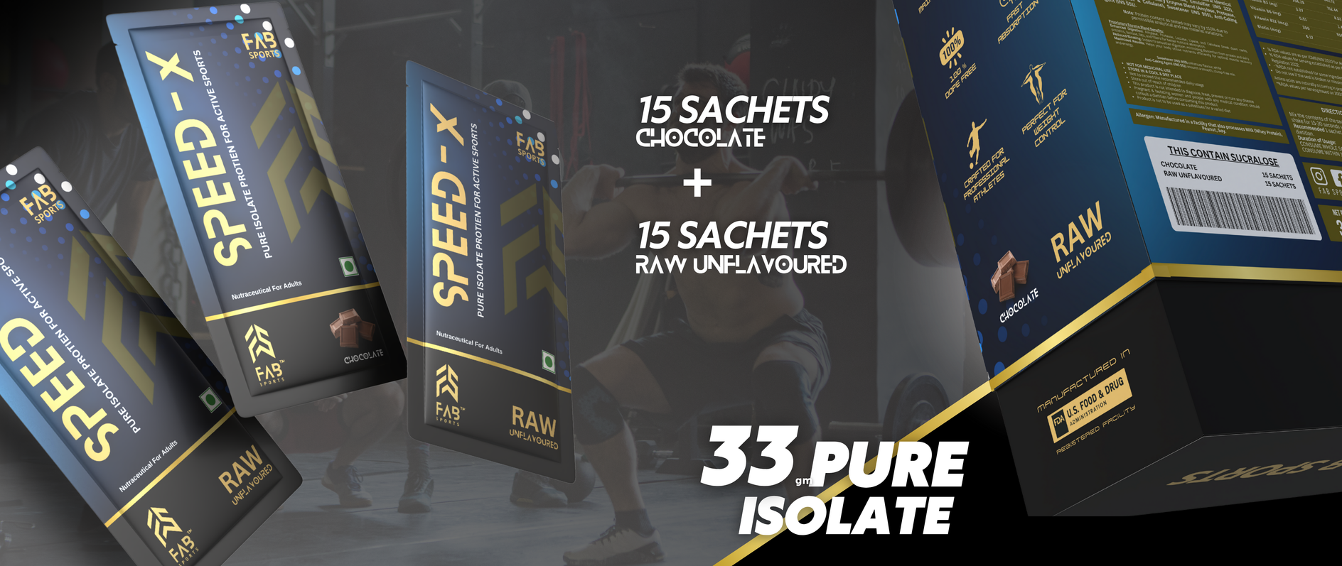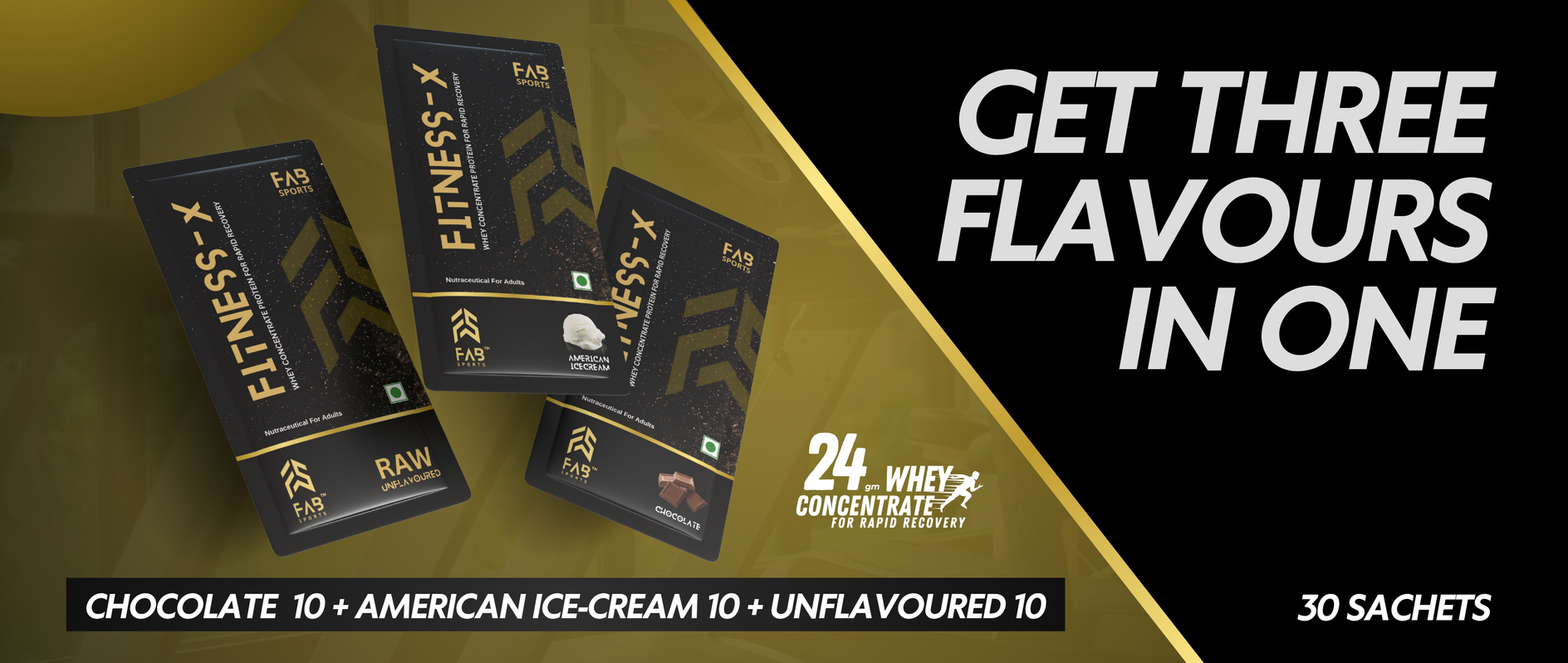 Fab Sports whey protein sachets are your go-to travel companion! Small and easy to carry, Fitness-X, Power-X, and Speed-X sachets make it a snap to fuel up on the move. Simply toss them in your bag, blend, and energize your workout wherever, whenever!